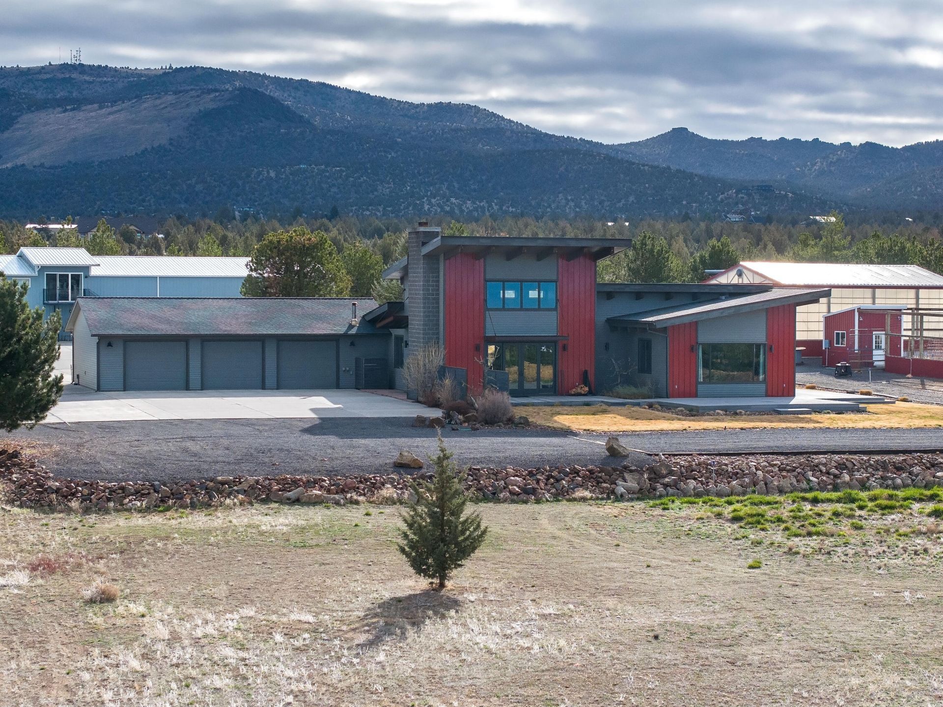 Exceptional Powell Butte property on 10 acres with a beautiful pine tree lined fenced perimeter and 1 acre of well water rights. Enjoy breathtaking Cascade Mountain views from the custom 2,680 sq ft single level home offering 3 bedrooms and 3 bathrooms. The open floor plan features vaulted ceilings, wood floors, a gas fireplace, and a gourmet kitchen with butlers pantry. The spacious primary suite captures mountain views and relaxing soaking tub. Outdoor living is enhanced by multiple patios and decks ideal for entertaining or enjoying the peaceful setting. Two Shops: 6,480 sq ft main shop with office, guest studio, bathrooms, workshop, storage and 3,780 sq ft lower shop with office, bathroom, storage. Property includes: 1,728 sq ft greenhouse, fenced garden and livestock/horse barn with three stalls/runs, tack room, bathroom, and hay storage. Multiple RV hookups add convenience. A versatile Central Oregon property for hobbies, recreation or rural living.