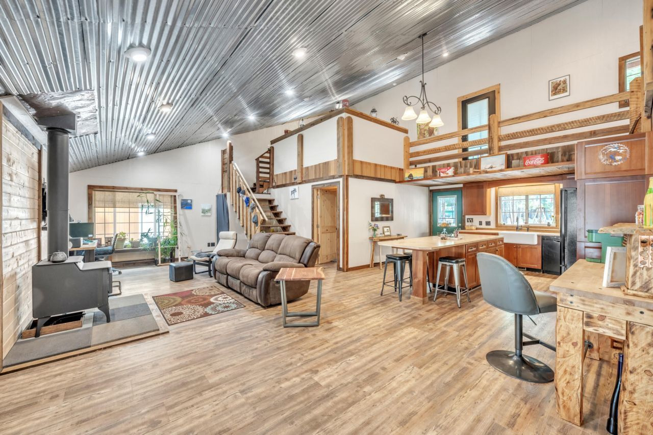 Step back in time, without sacrificing modern comfort in this one-of-a-kind rustic Western saloon-style home nestled among the majestic Ponderosa pines of Central Oregon. Located just minutes from town, rivers & lakes, this unique property is perfect as a full-time residence or vacation rental opportunity. Inside, a beautifully designed open floor plan welcomes you with warmth and character. The main bedroom is located downstairs, while upstairs a spacious loft features a second bedroom plus additional space ideal for a third bedroom, office, or creative studio. The kitchen offers a large center island, perfect for cooking and gathering. The large bathroom provides a cozy clawfoot bathtub perfect for soaking. Outside, enjoy full RV hookups and direct trail access for riding and outdoor adventure. Owners may consider leaving the custom-built sauna and 2020 CF Moto side-by-side. A rare blend of Old West charm and modern convenience--this is a rare gem you wont want to miss.