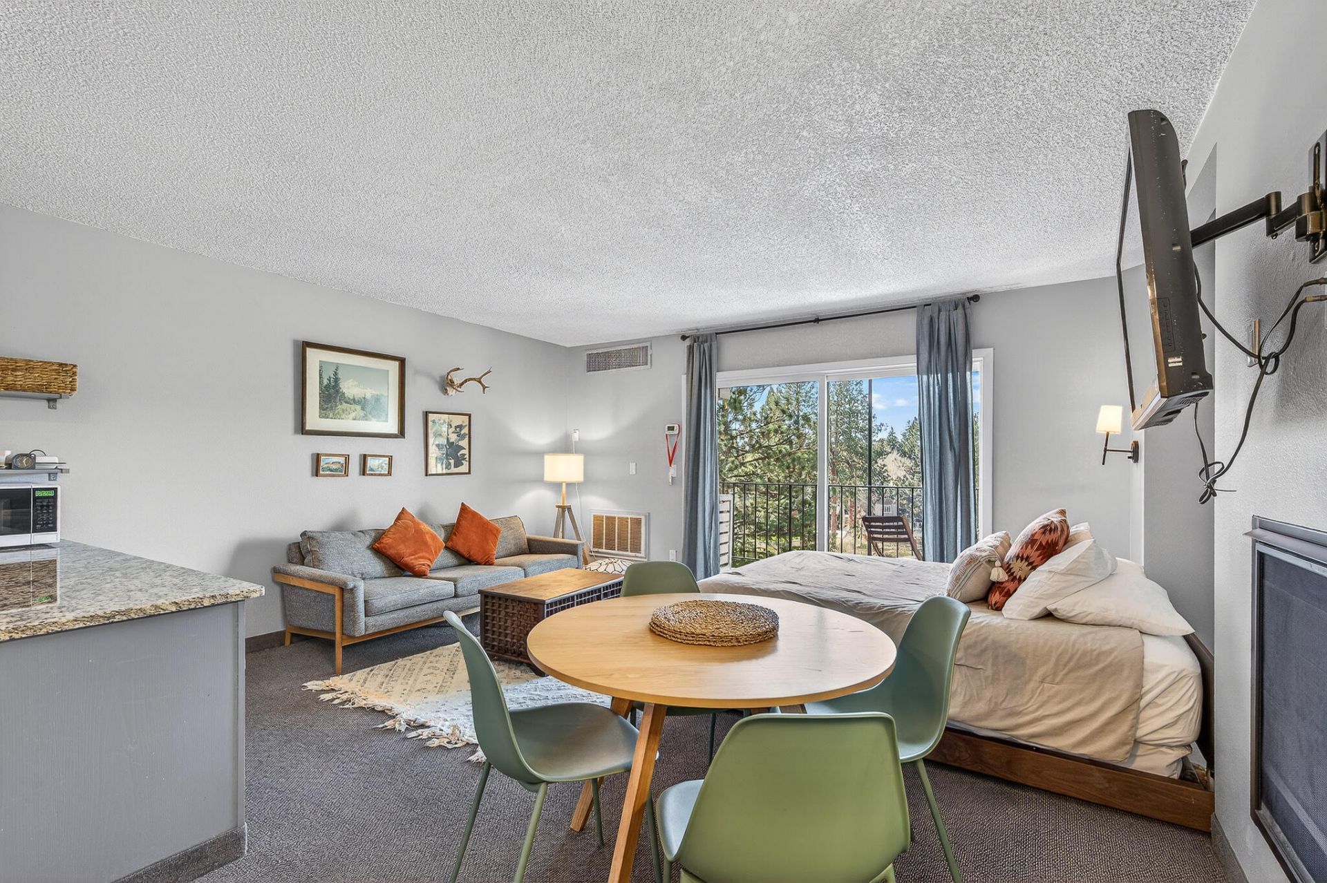 Wake up to Deschutes River views right in the heart of downtown Bend. This smartly designed 653 sq ft condo delivers an everyday living experience that feels anything but small. A bright, open living area frames the water beautifully, while the private primary suite with its own en-suite bath offers a genuine sense of retreat. A second full bathroom and Murphy Bed means guests have their own space, too. Outside your door, a community pool adds a resort-like touch. Short-term rental approval is already in place, opening the door to strong vacation rental income when youre not here enjoying it yourself. HOA dues cover utilities, cable, and exterior maintenance, keeping ownership truly low-maintenance. Whether youre looking for a full-time residence, a lock-and-leave Bend basecamp, or a high-performing investment property, this riverside condo checks every box.