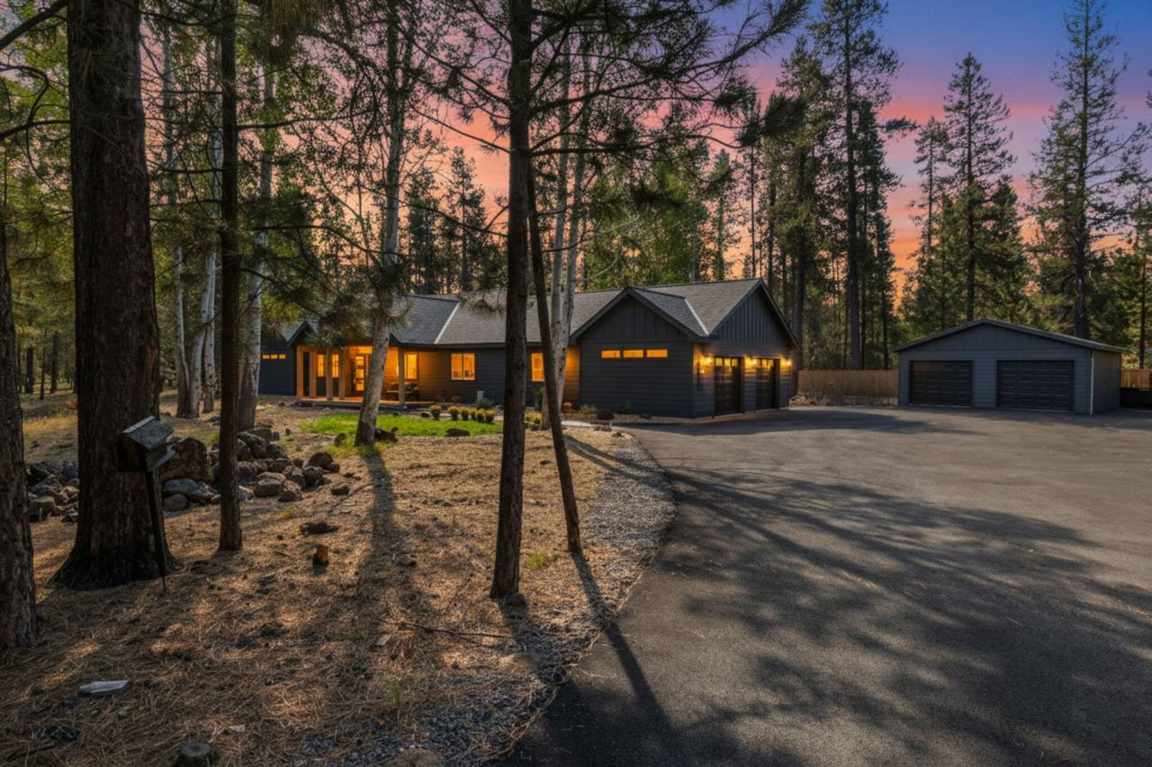 Discover your ideal Oregon retreat in this newly built contemporary PNW home on 1.26 serene, forested acres. This 2,185 sq. ft. single-level residence combines luxury and comfort with vaulted ceilings, wide hallways, and a sunlit great room. The chefs kitchen features stainless steel appliances, custom cabinetry, and an inviting eat-bar?perfect for entertaining family or guests. The primary suite offers a spa-inspired bath and walk-in shower, while two additional bedrooms and an office provide flexible space. Step outside to a covered patio and private hot tub amidst peaceful forest views. With an attached two-car garage, detached shop, and RV hookup, this home accommodates every lifestyle. Just 30 minutes from Bend and 40 to Mt. Bachelor, its a turnkey escape for relocation buyers or a sophisticated vacation retreat.