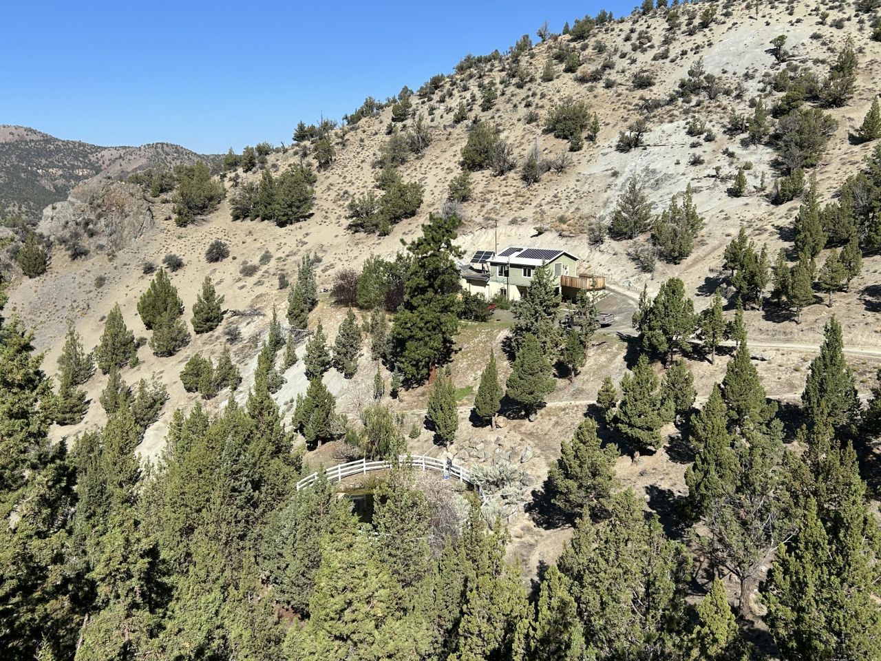 If you are looking for the ultimate privacy in a spectacular setting, this is it. Ideal for that weekend get-away or full time. Nestled on the west side of Black Butte near Mitchell, this property boast 203.6 acres with a cozy home/cabin and a strong developed spring that supplies the house and a year round pond. The geological features of the property are impressive with awe inspiring vertical rock formations and access to the top of Black Butte which lies on the adjacent BLM parcel. There is also a second spring. The home is powered by a state of the art 240 volt solar and battery system. Batteries are about 3 years old with a 20 year transferable warranty. LOP tags available (check with ODFW). There is a 1,000 gallon buried propane tank. This is a must see, off-grid opportunity just 10 minutes from Mitchell, 45 minutes from Prineville and an hour and twenty minutes from Bend.