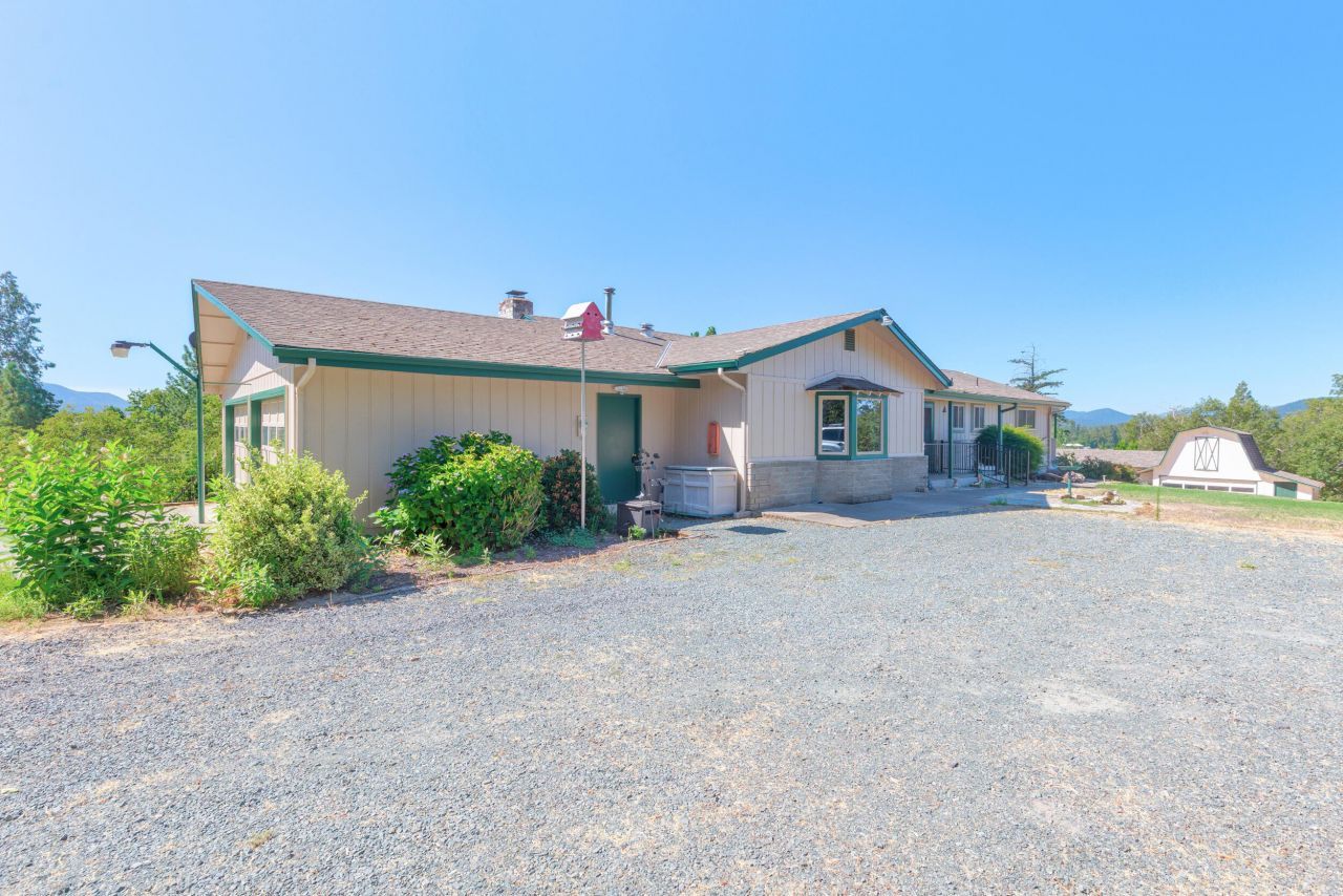 Built in 1976, this single level, 2,140 sf home, with a primary bedroom and 2 guest bedrooms, 2 baths. with an open floor plan, sits on 2.62 acres and is close to town, Forced air heat & A/C. There is an oversized 2 car garage, fenced swimming pool with a slide, a barn /shop with a hay loft and large workbench. Horse stables with 3 individual stalls. The interior of the home includes a kitchen with Corian counter tops, breakfast bar, electric range, refrigerator, dishwasher large pantry. Also a dining and a living room with wood burning, brick fireplace. There is a large den/family room with enclosed laundry area, a built-in desk and a large bookcase. Ceiling fans in most rooms. There is an enclosed, screened deck off the dining room and a patio off the pool area. There is a pond in front of the house. The Exterior of home recently painted. Firewood in the stables is included. Seller offering a $5,000 concession for carpet and GFI repair. Inspections have been done.