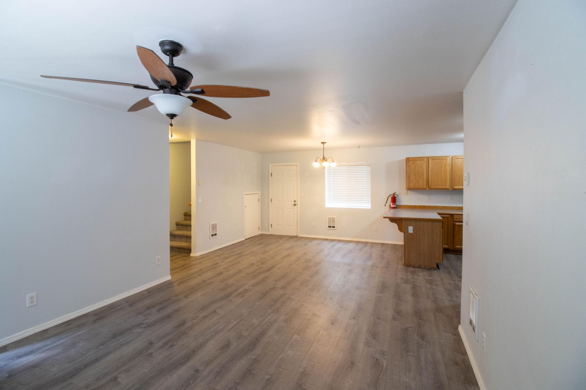 Adorable, clean condo in NE Bend, ready for you to come make it your own! Downstairs youll find a light & bright open living area with laundry and half bath. Newer LVP flooring town stairs and carpets on stairs and upstairs bedrooms. Upstairs is two bedrooms and full bath. Fully fence back yard with a storage shed for additional storage. Right across from St. Charles Hospital! Located near shopping, dining, medical facilities, Pilot Butte trailhead and numerous parks. This home would make agreat investment or home for the first time buyer!