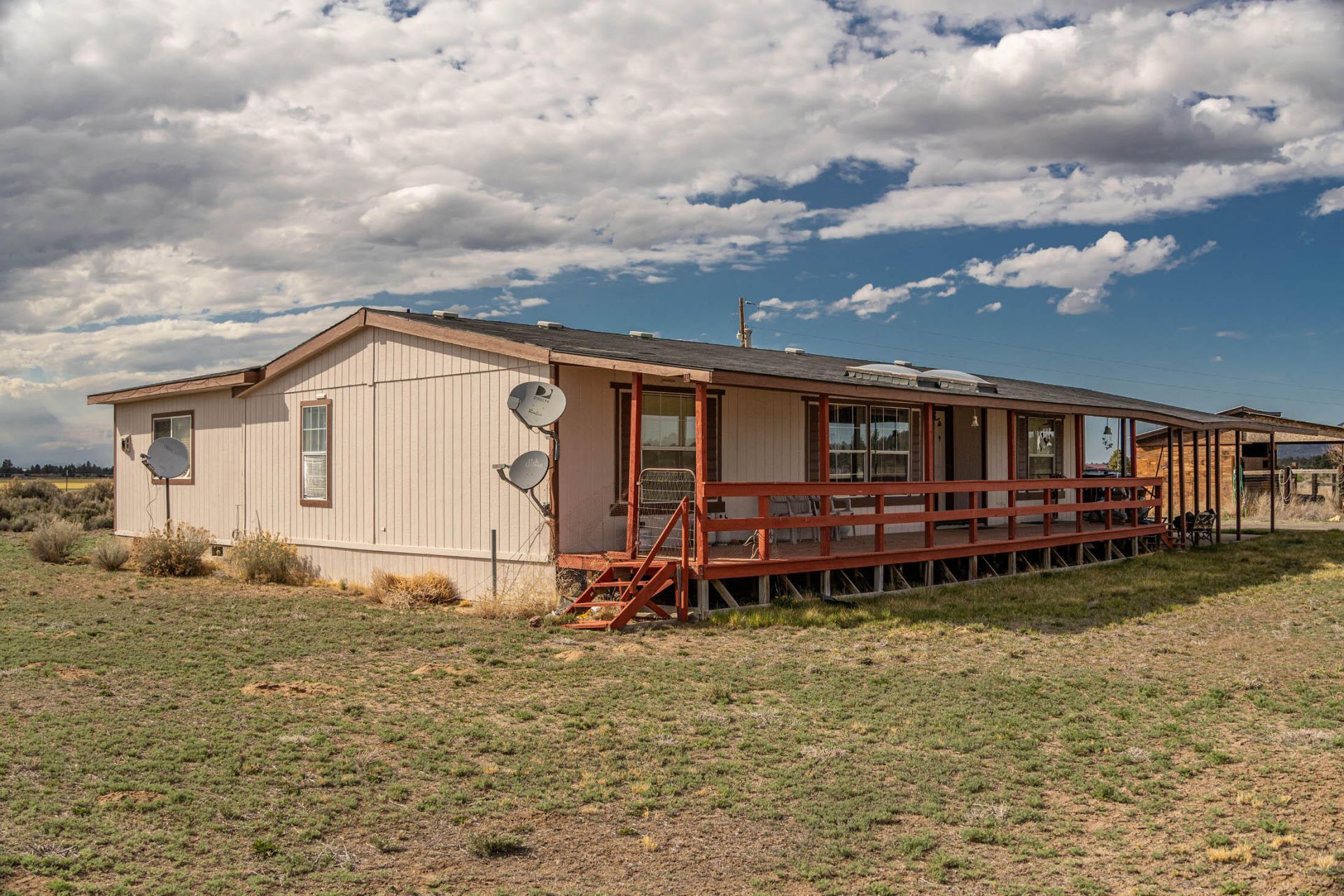 Horse-ready setup with Cascade Mountain views and end-of-road privacy on 9.74 acres! Located in a quiet rural farming area, this 3 bed, 2 bath home built in 1992, offers 1776 sq.ft. including permitted, frame-built family room addition (2000). Vaulted living room opens to a covered east-facing deck-perfect for taking in sunrise views. Kitchen features eating bar, large pantry, & adjoining dining area. Spacious family room includes propane fireplace, vaulted ceiling, & slider to large open deck. Property is fenced & cross-fenced with three separate livestock areas plus hay barn - ideal for horses or hobby farm use. Attached carport with accessible ramp to front deck. Home equipped with tie downs & newer comp roof. Plenty of room to ride, grow, & enjoy a true country lifestyle!