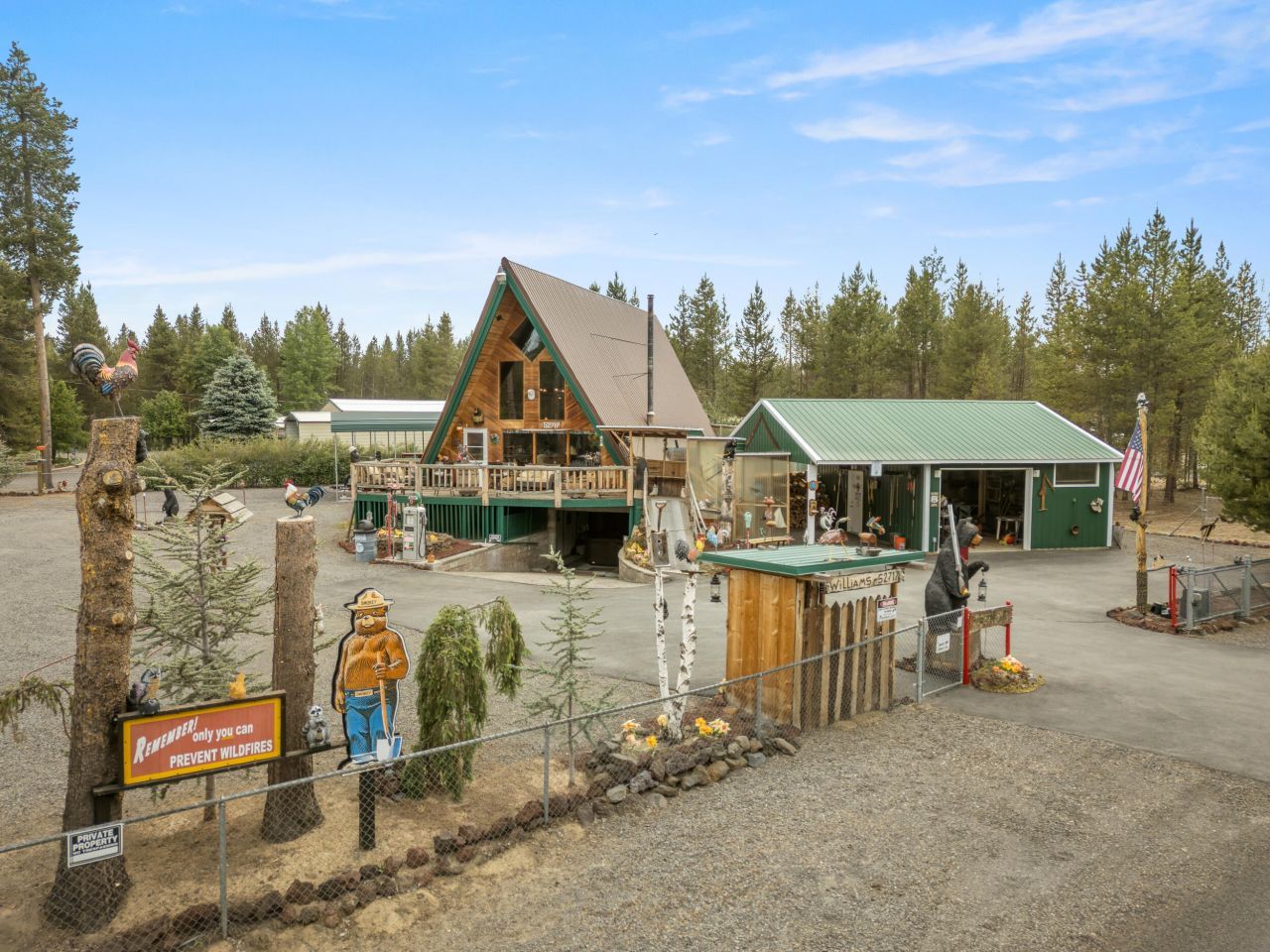 Dont miss this classic 3-bed, 1.5-bath, fully furnished A-frame just minutes from thousands of acres of public lands. Situated on a corner lot, this property is ideal for outdoor enthusiasts, with multiple outbuildings for storing gear or an RV, plus shop and greenhouse building. The main level includes two bedrooms with rear deck, a full bath, and kitchen with custom blue-pine cabinetry that opens to the vaulted living room. Upstairs youll find a bedroom with a 1/2 bath, a loft, and a private balcony. Enjoy summer evenings lounging on the large front deck while the basement provides endless possibilities for hobbies, home business, gym, or game room, and includes laundry and storage rooms. Single-car garage is currently used as a hot tub room. Just 10 minutes to downtown La Pine, this home would make an excellent fishing or hunting retreat, vacation property, short-term rental, or full-time residence with easy access to nearby lakes, rivers, and mountain adventures. Sold As-Is