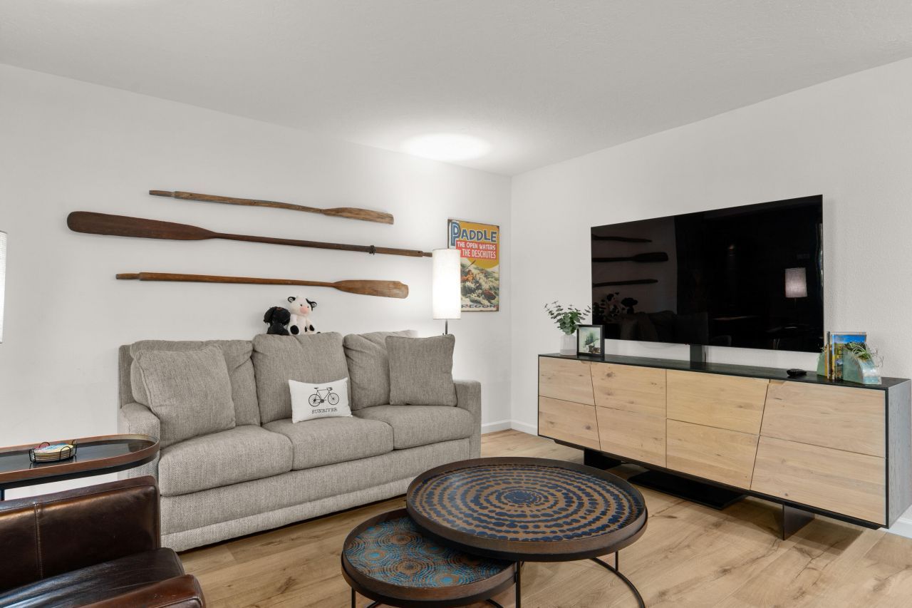 Discover the perfect blend of modern living and prime location in this beautifully remodeled condominium, ideally situated just steps from Sunriver Village. This charming residence features an easy-to-live-in floor plan that invites natural light throughout the space, highlighting the custom finishes, including reclaimed barn wood in the entryway and stylish barn doors. The thoughtfully designed kitchen boasts an island, premium Bosch stainless steel appliances, and a five-burner gas range, making it perfect for both casual dining and entertaining. With one generous bedroom featuring a built-in closet, a bathroom with a chic shower, and the convenience of an in-unit washer and dryer, this condominium is versatile enough to serve as a vacation rental, secondary home, or primary residence. Enjoy access to nearby trails and community amenities that enhance the Sunriver lifestyle. Seize this exceptional opportunity and make this stunning condominium your new home in Sunriver, Oregon.