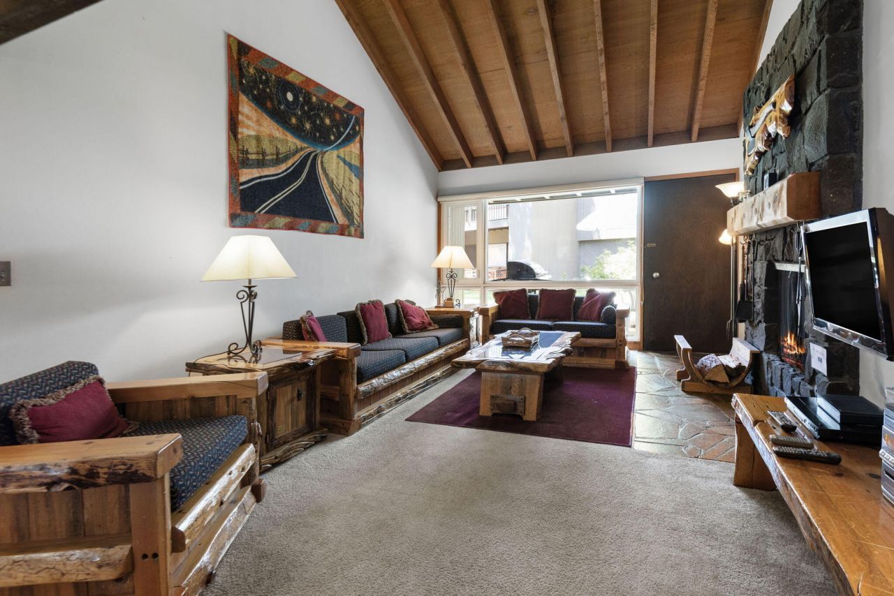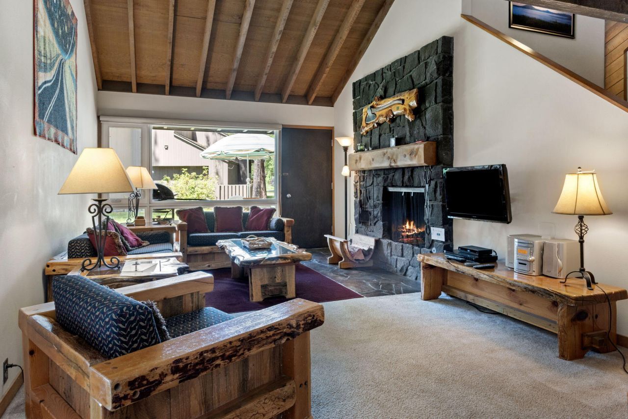 Discover your dream retreat in this charming 2-bedroom, 2-bathroom Meadow House condominium, nestled within the picturesque Sunriver Resort. Spanning 1,230 square feet, this inviting home features stunning vaulted exposed wood beam ceilings and wood accent walls that create a warm, rustic atmosphere. The stone surround wood-burning fireplace in the living area adds a touch of comfort, ideal for chilly evenings. Enjoy the convenience of having the primary bedroom on the main level, while a spacious loft area offers flexible sleeping options for guests. Updated kitchen stainless steel appliances. Step outside to your private deck, featuring a BBQ grill for outdoor dining, and unwind in the hot tub, surrounded by a privacy wall. Custom furniture designed by Russell Forest enhances the appeal of living space. Located on Island Rd, youre just moments from Sunriver Village. Seller is offering $5000 credit towards carpet or closing costs.