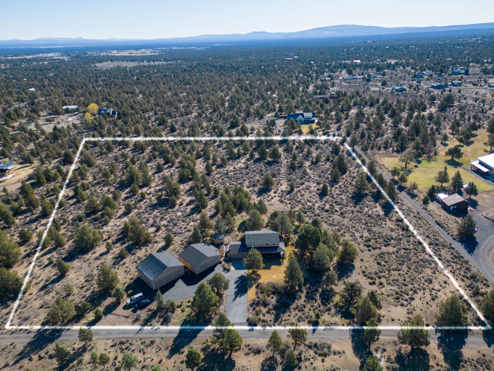 Private, close in Acreage only 5 minutes to Bend! Serene and peaceful setting with great potential. Sitting on approx. 9.96 acres this home with wrap around porch is clean and well taken care of. The home has a living room and large family room on the lower level and 3 bedrooms on the second level. Two Shops with 5 bays plus the attached two care garage with tons of storage and work space. The 34 X 34 2-bay shop w/200 amp service and 10 foot ceilings was built in 2004. The 34X36 3-bay shop w/200 amp service was added in 2020 and includes a commercial 2 post car lift. RR10 zoning allows for great potential. Come make the current home your own with some modern upgrades and/or build your custom dream home. Potential to add irrigation water with Arnold Irrigation. Storage sheds, fenced garden beds, greenhouse, chicken coop, dog kennel, sprinkler system and paved driveway. Must See!