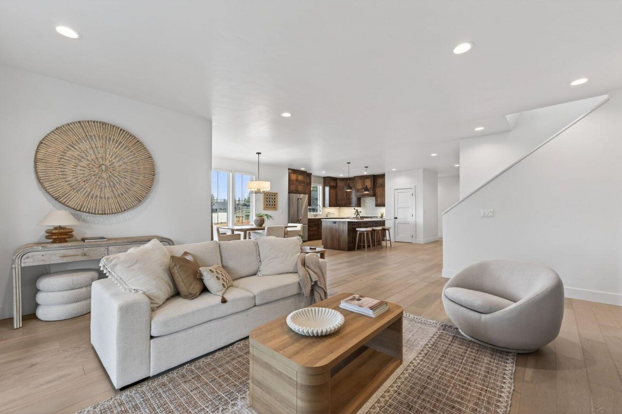 Built in 2023 by MCD Homes, this beautifully crafted residence is located in the highly desirable Shevlin West neighborhood and showcases the builders signature light, airy design and custom finishes. The open, functional floor plan is ideally situated on a generous corner lot, offering excellent privacy and a thoughtfully designed living experience. The custom kitchen flows seamlessly into the dining and living areas, perfect for everyday living and entertaining. The main level features a well-appointed primary suite, a dedicated office, and a half bath. Upstairs are two guest bedrooms, a full bath, and a versatile bonus/loft space. Outside, enjoy a spacious, low-maintenance yard with xeriscape landscaping, a hot tub, fire pit, and storage sheds. Take in Cascade Mountain views or walk just steps to the new Manzanita Ridge Park with quick trail access to Shevlin Park. This is Westside Bend living at its best.