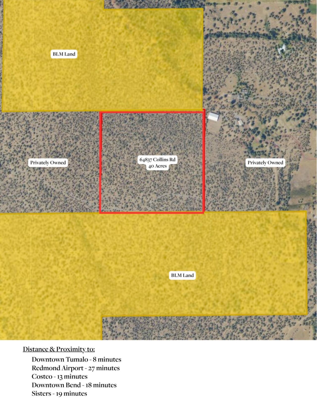 Discover this perfect untouched 40 acre canvas to build your dream home at 64837 Collins Rd in scenic Tumalo, Bend, Oregon. This spacious 40 acre parcel blends tranquility and convenience, with Mt Jefferson views as it is located minutes from downtown Bend, shopping, restaurants + touches BLM land/open spaces on both the north and south property line. Highlighted improvements include an approved Conditional Use Permit (CUP) to build your dream home, shop etc, a gravel road, and a shared road and shared road agreement with the neighbors. Take advantage of this serene setting, prime location and exceptional build site for your future home. Call us today for a private tour!
